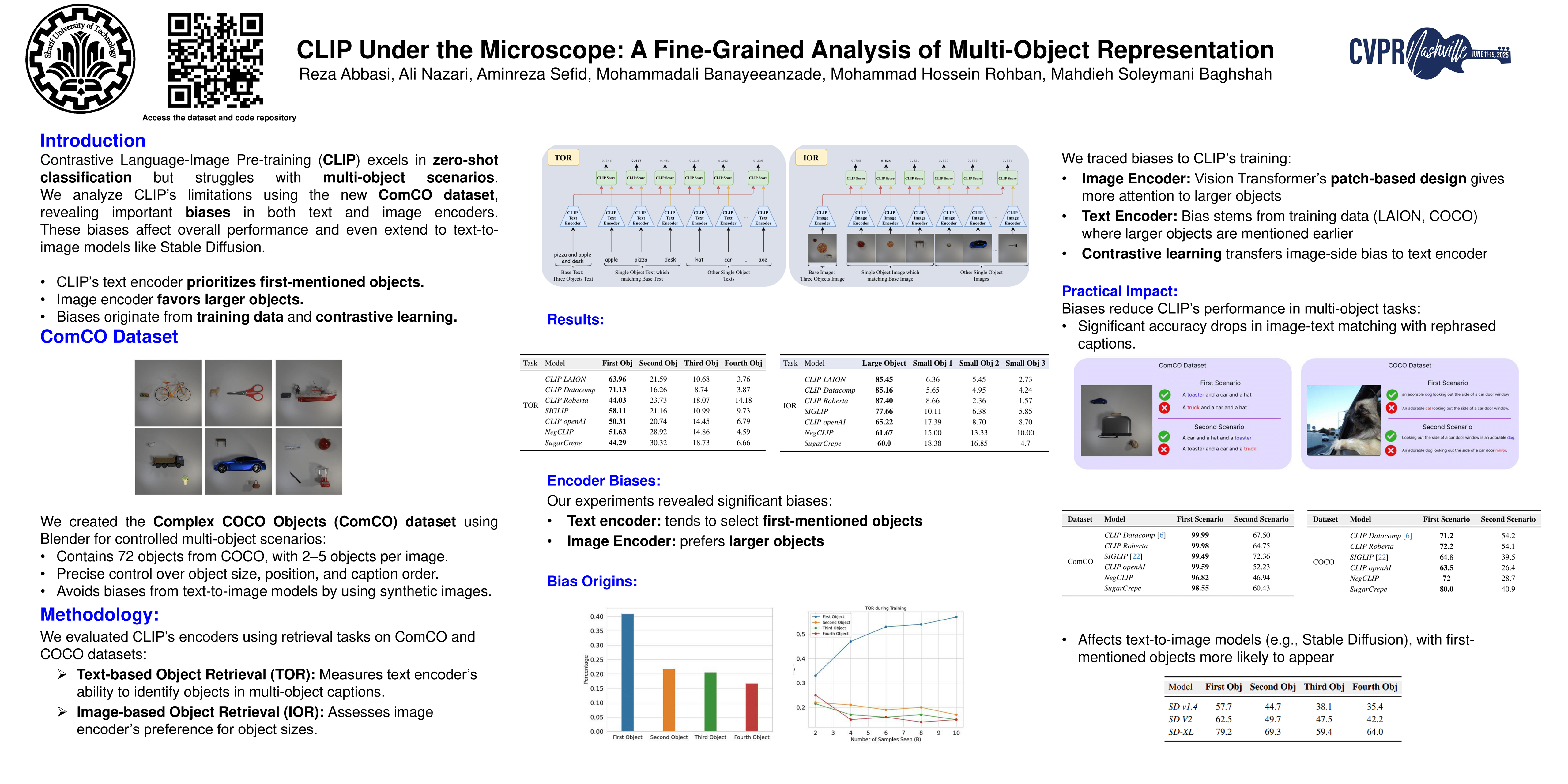 Contrastive Language-Image Pre-training (CLIP) models excel in zero-shot classification, yet face challenges in complex multi-object scenarios. This study offers a comprehensive analysis of CLIP's limitations in these contexts using a specialized dataset, ComCO, designed to evaluate CLIP's encoders in diverse multi-object scenarios. Our findings reveal significant biases: the text encoder prioritizes first-mentioned objects, and the image encoder favors larger objects. Through retrieval and classification tasks, we quantify these biases across multiple CLIP variants and trace their origins to CLIP's training process, supported by analyses of the LAION dataset and training progression. Our image-text matching experiments show substantial performance drops when object size or token order changes, underscoring CLIP's instability with rephrased but semantically similar captions. Extending this to longer captions and text-to-image models like Stable Diffusion, we demonstrate how prompt order influences object prominence in generated images.